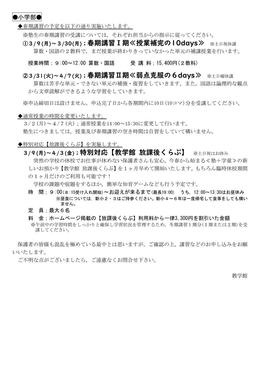 学校の休校期間中の対応について事前にご連絡をしていた通り,