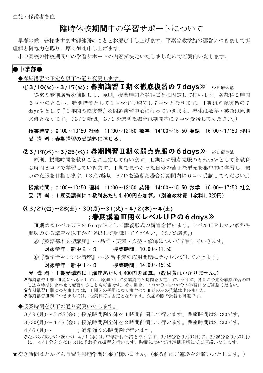 その後から来る学年にはすぐさま連絡を入れ,完全休塾となった。